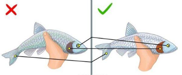 Dùng ngón tay trỏ ấn nhẹ vào phần thân dày nhất của con cá.
